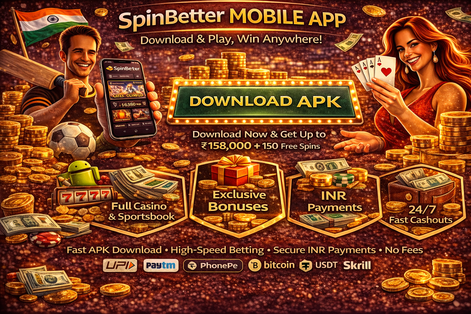 - ๐ฐ For slot lovers: up to INR 158,000 and 150 free spins on popular slot machines.